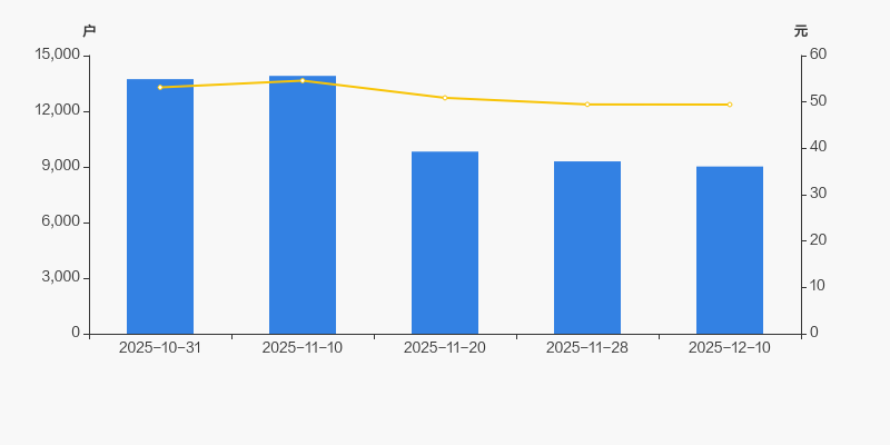 自2025年11月10日以来,公司股东户数连续3期下降,截至目前减幅为35.13%。2025年11月10日至2025年12月10日区间股价下降9.45%。