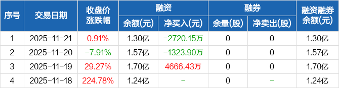 C南网数字:融资净偿还2720.15万元,融资余额1.3亿元(11-21)