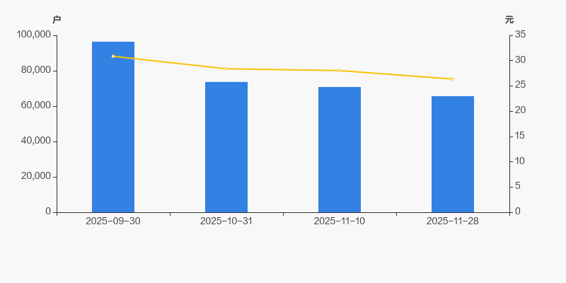 2025年9月30日至今,公司股东户数显著下降,区间跌幅为31.92%。2025年9月30日至2025年11月28日区间股价下降14.58%。