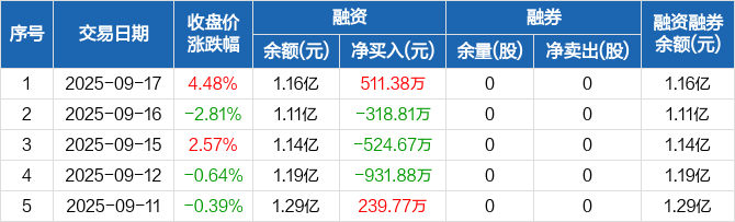 首航新能:融资净买入511.38万元,融资余额1.16亿元(09-17)