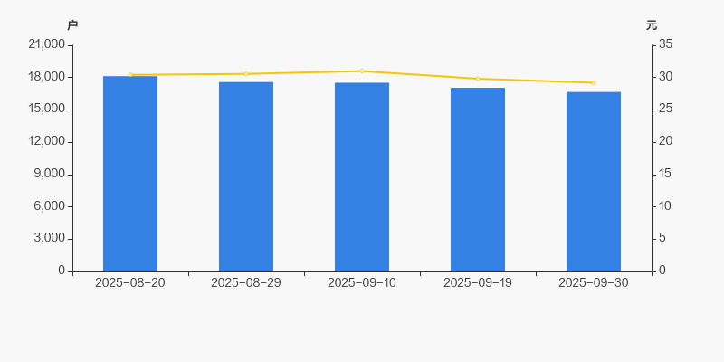 截至2025年9月30日,公司最新总股本为4.5亿股,其中流通股本为3590.63万股。户均持有流通股数量由上期的2107股上升至2155股,户均流通市值6.29万元。