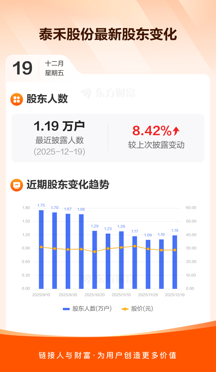 泰禾股份:截至12月19日最新股东户数1.19万户,较上期增加8.42%