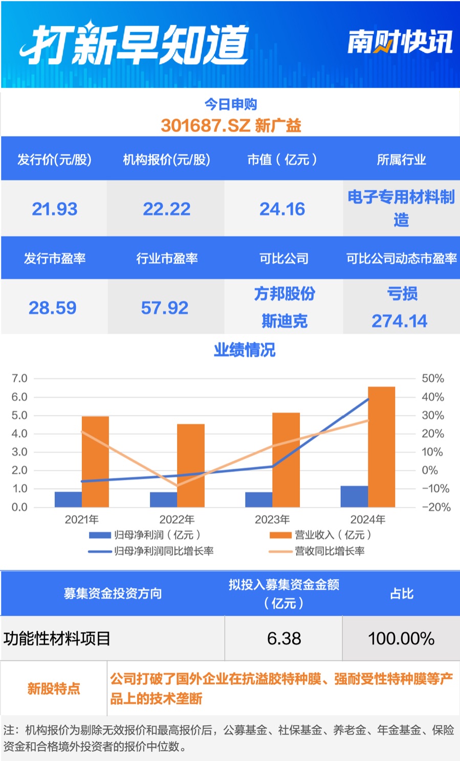 12月22日,可申购创业板的新广益(301687.SZ)与沪市主板的陕西旅游(603402.SH)。