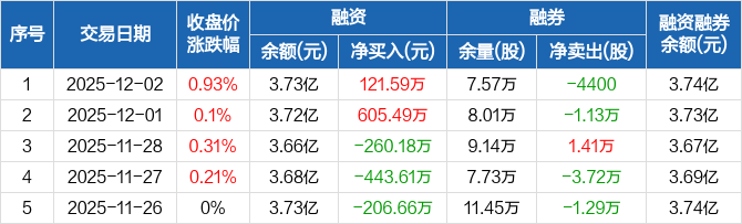 白云机场:融资净买入121.59万元,融资余额3.73亿元(12-02)