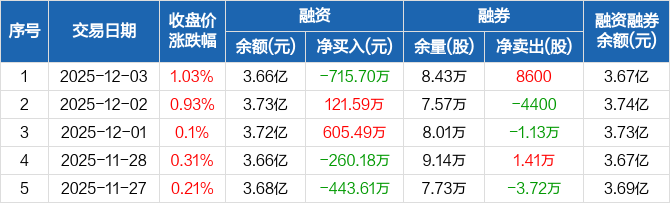 白云机场:融资净偿还715.7万元,融资余额3.66亿元(12-03)