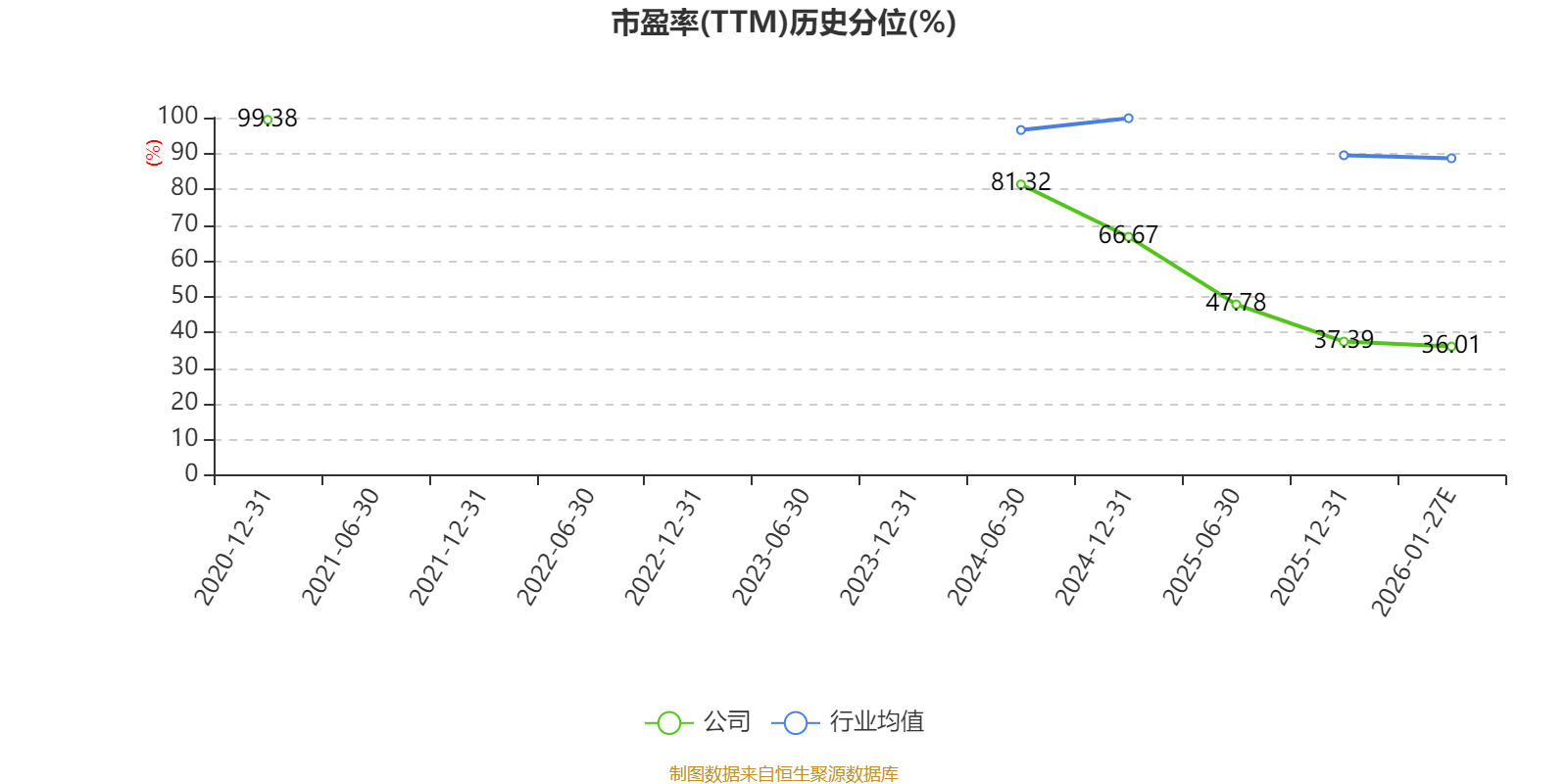 市盈率、市净率为负时,不显示当期分位数,会导致折线图中断。