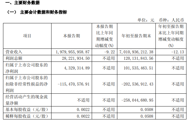 上年同期,公司实现利润总额-233.97万元,归属于母公司所有者的净利润2,916.22万元,归属于母公司所有者的扣除非经常性损益的净利润-68,995.70万元。
