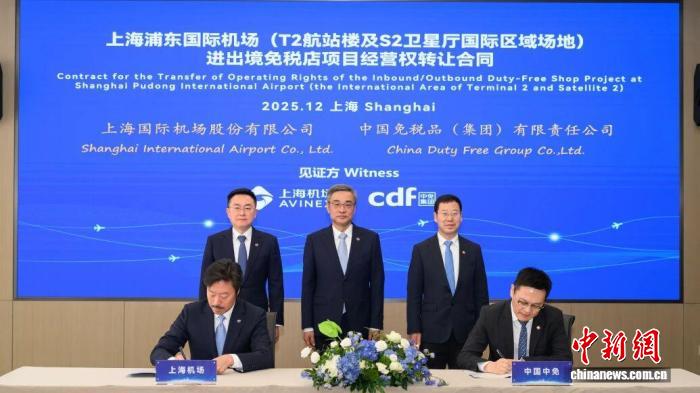 中新网上海12月18日电 (记者殷立勤)12月17日,上海机场集团浦东、虹桥国际机场进出境免税店项目经营权转让合同签约仪式在上海举行。上海机场集团董事长冯昕,上海机场集团总裁周浩,上海机场集团副总裁、财务总监宋雪枫;中国旅游集团董事、总经理兼中国旅游集团中免股份有限公司董事长范云军,中国旅游集团中免股份有限公司董事、总经理常筑军;Avolta(杜福睿)集团首席商务和电子数字化执行官Vijay Talwar、亚太区总裁兼首席执行官张蔡芝敏,以及上海国际机场股份有限公司、上海浦东国际机场公司、上海虹桥国际机场有限责任公司、中国旅游集团中免股份有限公司、Avolta(杜福睿)集团相关负责人参加仪式。