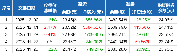 包钢股份:融资净偿还655.86万元,融资余额23.45亿元(12-02)