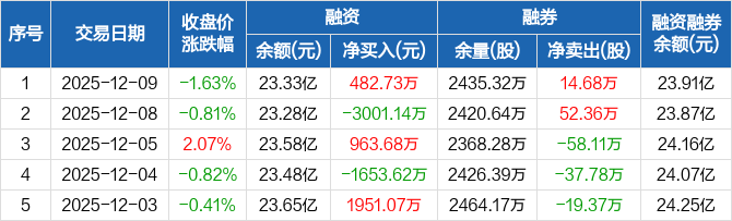 包钢股份:融资净买入482.73万元,融资余额23.33亿元(12-09)