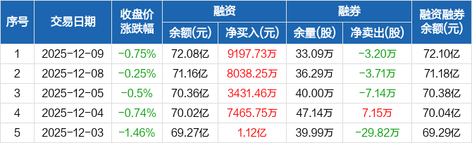 民生银行:融资余额72.08亿元,创近一年新高(12-09)