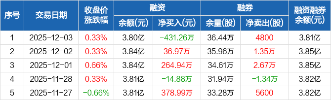 日照港:融资净偿还431.26万元,融资余额3.8亿元(12-03)