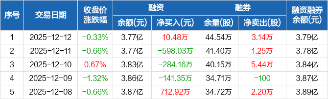 日照港:融资净买入10.48万元,融资余额3.77亿元(12-12)