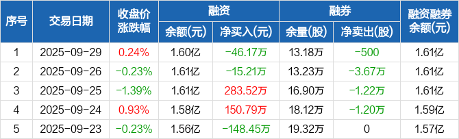 中原高速:融资净偿还46.17万元,融资余额1.6亿元(09-29)