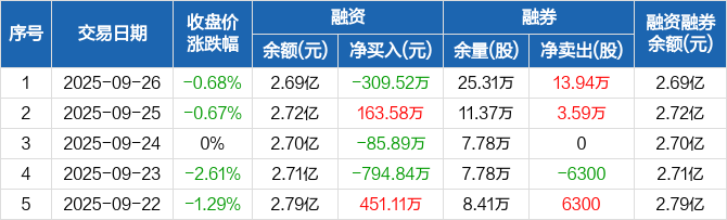 山东钢铁:融资净偿还309.52万元,融资余额2.69亿元(09-26)