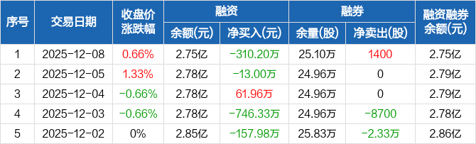 山东钢铁:融资净偿还310.2万元,融资余额2.75亿元(12-08)