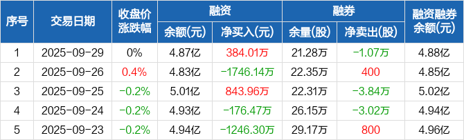 浙能电力:融资净买入384.01万元,融资余额4.87亿元(09-29)