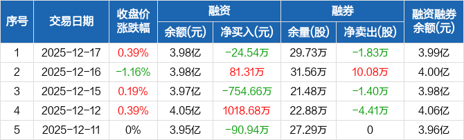 浙能电力:融资净偿还24.54万元,融资余额3.98亿元(12-17)