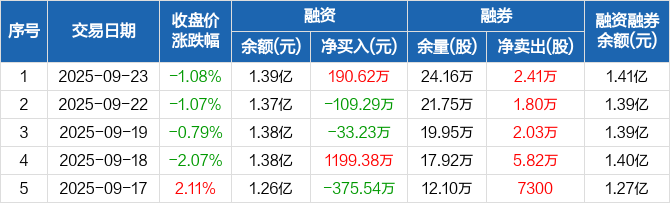 浙江新能:融资净买入190.62万元,融资余额1.39亿元(09-23)