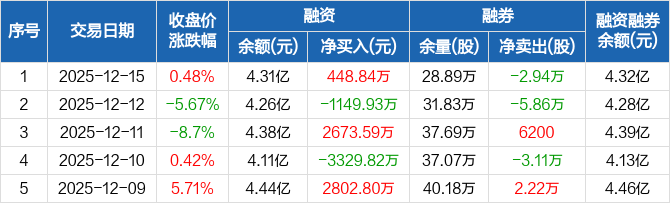 福建高速:融资净买入448.84万元,融资余额4.31亿元(12-15)