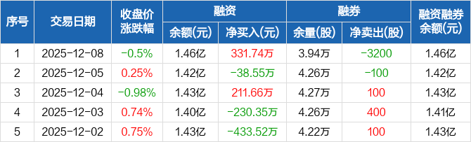 楚天高速:融资净买入331.74万元,融资余额1.46亿元(12-08)
