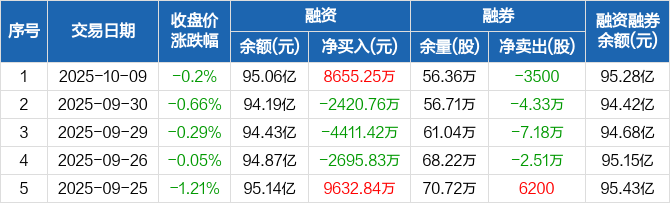 招商银行:融资净买入8655.25万元,融资余额95.06亿元(10-09)