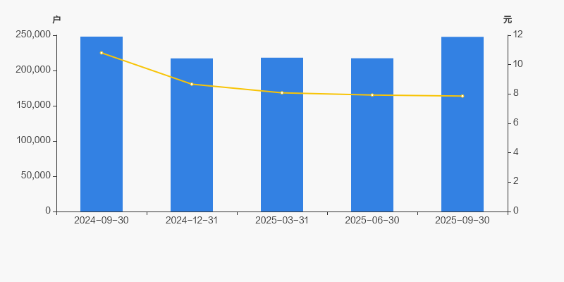 2024年9月30日至今,公司股东户数有所下降,区间跌幅为0.13%。2024年9月30日至2025年9月30日区间股价下降27.19%。