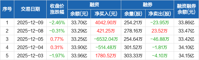 保利发展:融资净买入4042.9万元,融资余额33.7亿元(12-09)