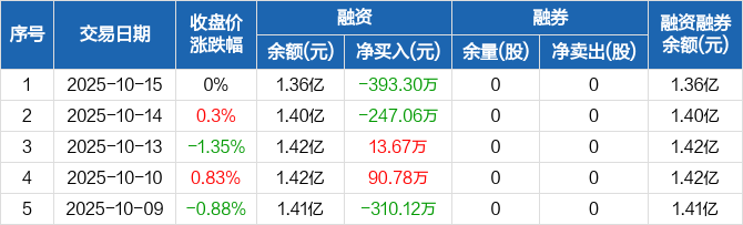 九鼎投资:融资净偿还393.3万元,融资余额1.36亿元(10-15)