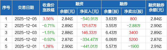 五矿发展:融资净偿还540.91万元,融资余额2.84亿元(12-05)