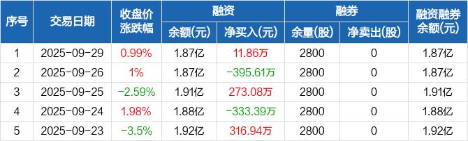 冠城新材:融资净买入11.86万元,融资余额1.87亿元(09-29)