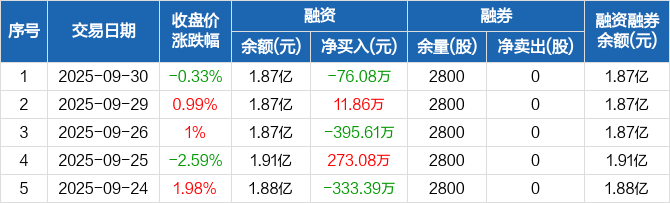 冠城新材:融资余额1.87亿元,创近一年新低(09-30)