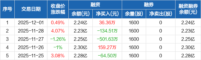 冠城新材:融资净买入36.36万元,融资余额2.24亿元(12-01)