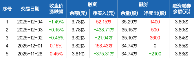 光明肉业:融资净买入52.15万元,融资余额3.78亿元(12-04)