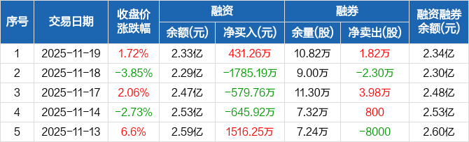 新疆天业:融资净买入431.26万元,融资余额2.33亿元(11-19)