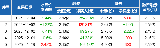 新疆天业:融资净偿还254.39万元,融资余额2.12亿元(12-04)