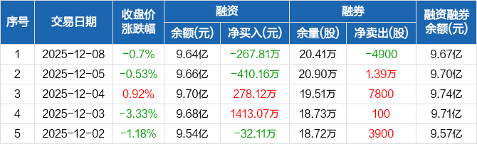 人福医药:融资净偿还267.81万元,融资余额9.64亿元(12-08)