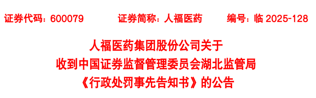 人福医药表示,公司本次收到的为湖北证监局《行政处罚事先告知书》,最终结果以其后续出具的《行政处罚决定书》为准。