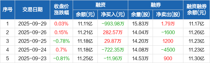 同仁堂:融资净偿还993.98万元,融资余额11.11亿元(09-29)