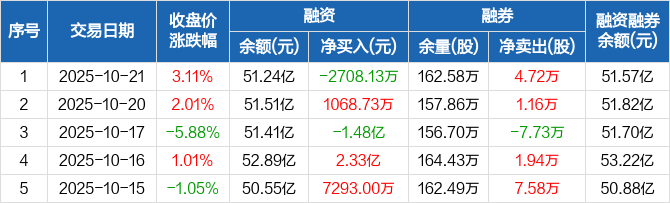 特变电工:融资净偿还2708.13万元,融资余额51.24亿元(10-21)
