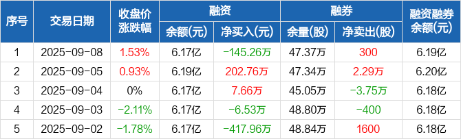 大名城:融资净偿还145.26万元,融资余额6.17亿元(09-08)