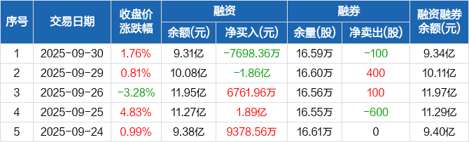 永鼎股份:融资净偿还7698.36万元,融资余额9.31亿元(09-30)