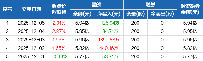 重庆路桥:融资净偿还125.94万元,融资余额5.94亿元(12-05)