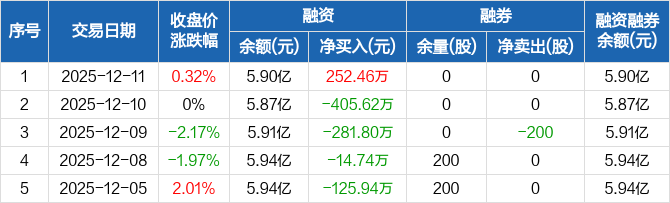 重庆路桥:融资净买入252.46万元,融资余额5.9亿元(12-11)