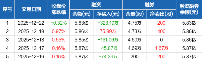 重庆路桥:融资净偿还323.19万元,融资余额5.83亿元(12-22)