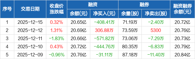国金证券:融资净偿还408.41万元,融资余额20.65亿元(12-15)