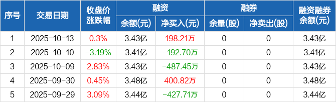 诺德股份:融资净买入198.21万元,融资余额3.43亿元(10-13)