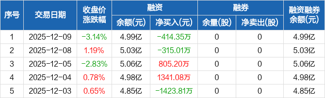 诺德股份:融资净偿还414.35万元,融资余额4.99亿元(12-09)