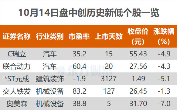 东方财富Choice数据显示,今日有5只个股盘中股价创历史新低。