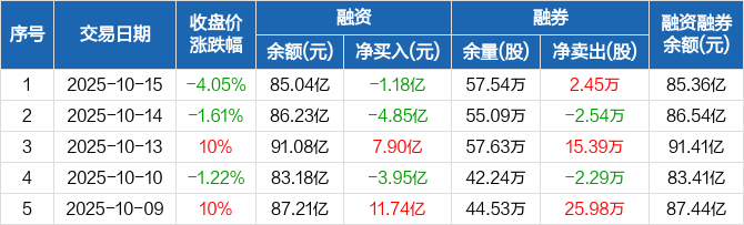 北方稀土:融资净偿还1.18亿元,融资余额85.04亿元(10-15)
